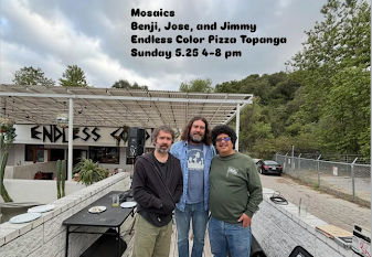 This Sunday 5/25, the Mosaics three headed sound system is back from 4-8 PM with a good possibility of overtime. Selections by Hoseh, Alvin Piranhas, and Dntel.Endless Color Pizza Topanga has the delicious food, drinks, and vinyl!